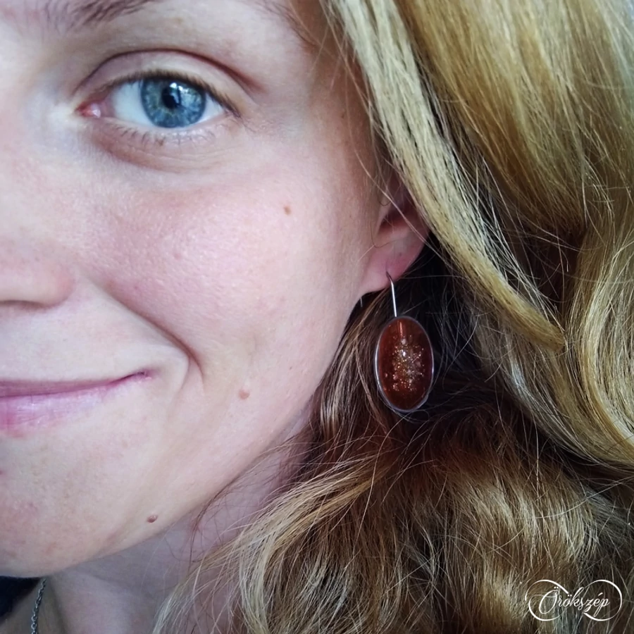 Rosegold gyantában apró kagylódarabkák ragyogása teszi elevenné és játékossá ezt a klasszikus, kör alakú fülbevalót. Az akasztója is egyedi, mivel a kör közepére illeszkedik, így igazán harmonikus összhatást nyújt.